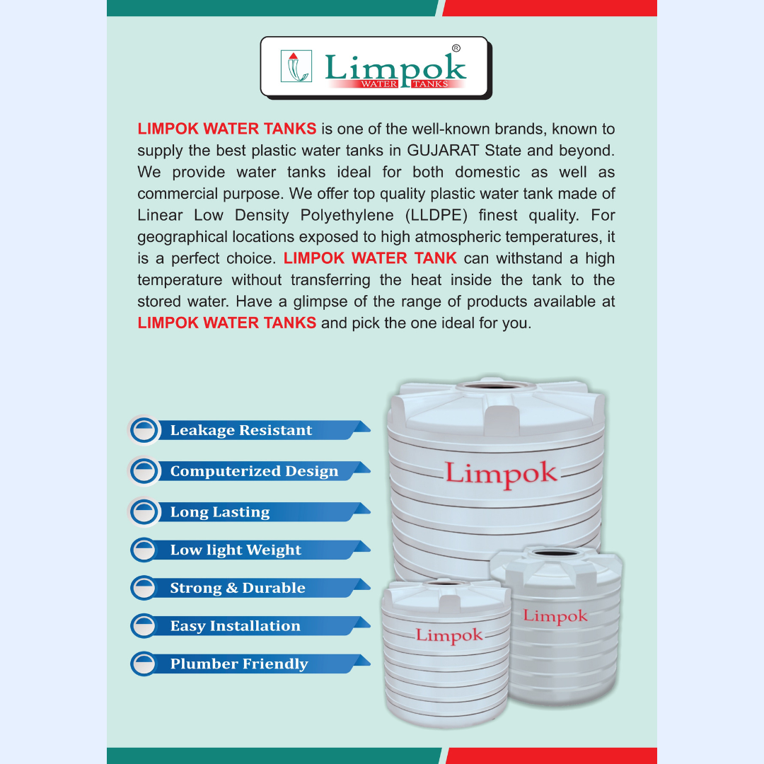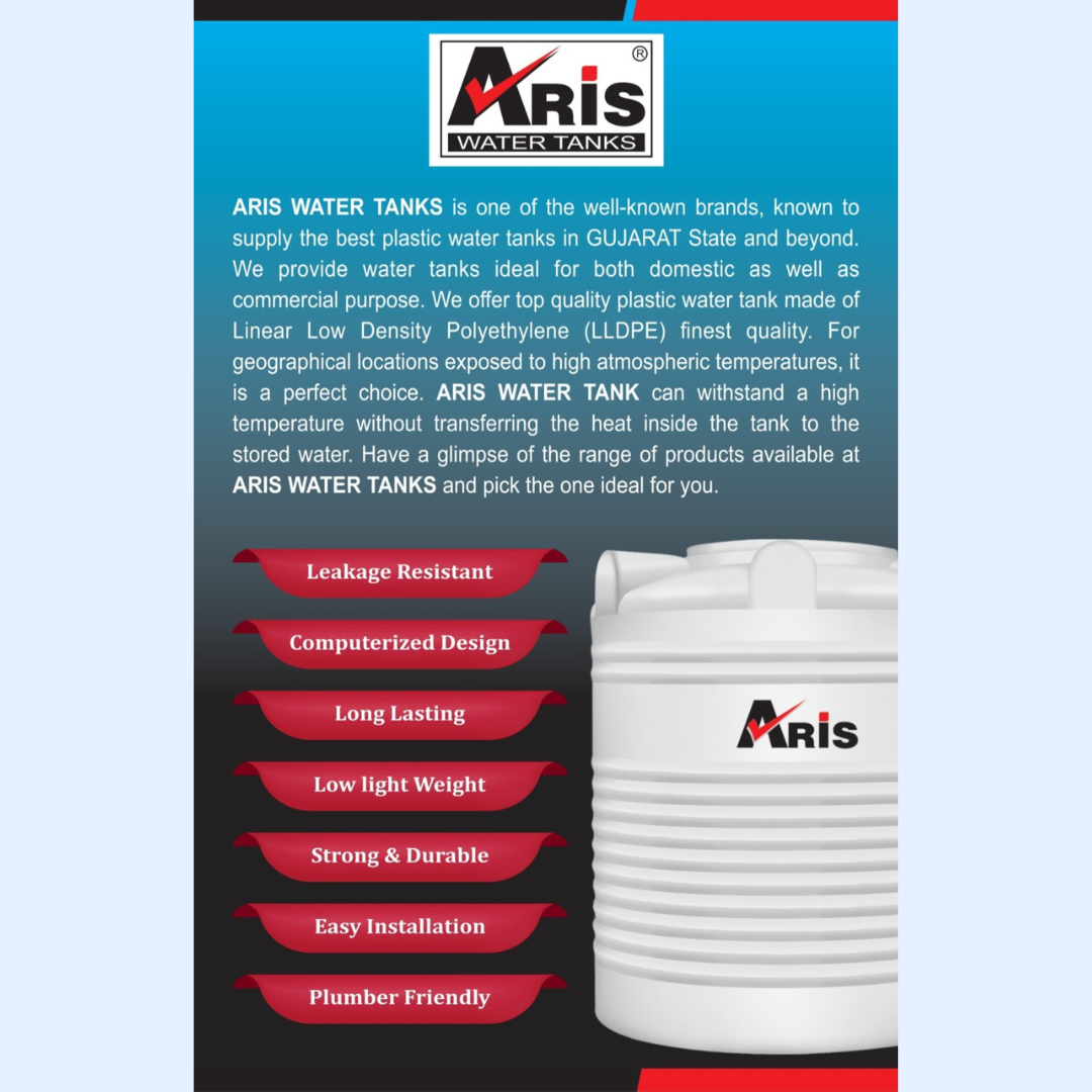 Our Aris and Limpok water tanks are manufactured using premium LLDPE raw material, ensuring excellent resistance to heat, weather conditions, and external impact. Designed with modern computerized technology, our tanks are lightweight, leak-proof, and easy to install, making them suitable for diverse applications across India.